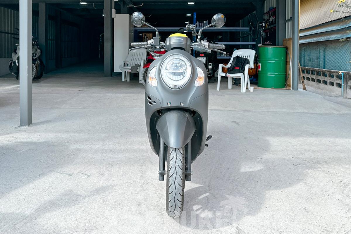 Scoopy 110cc оборудован автоматической трансмиссией CVT V-Matic, удобной телескопической вилкой спереди и моноамортизатором сзади, а также безопасной тормозной системой с передним диском и задним барабаном. Компактные 12-дюймовые бескамерные шины и лёгкая масса около 95–100 кг делают его манёвренным в плотном городском трафике и удобным для парковки. Удобная низкая посадка (746 мм) и вместительное подседельное пространство (15–17 л) позволят легко перевозить небольшие сумки и личные вещи.