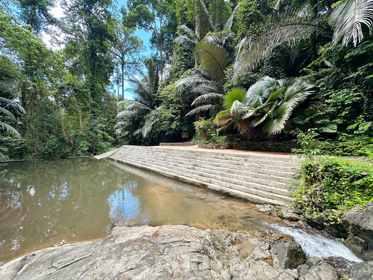 Вдоль маршрута есть несколько мест, где можно охладиться в прохладной горной воде. Небольшие естественные бассейны позволяют отдохнуть от жары и сделать уникальные фотографии на фоне зелени и водопада.