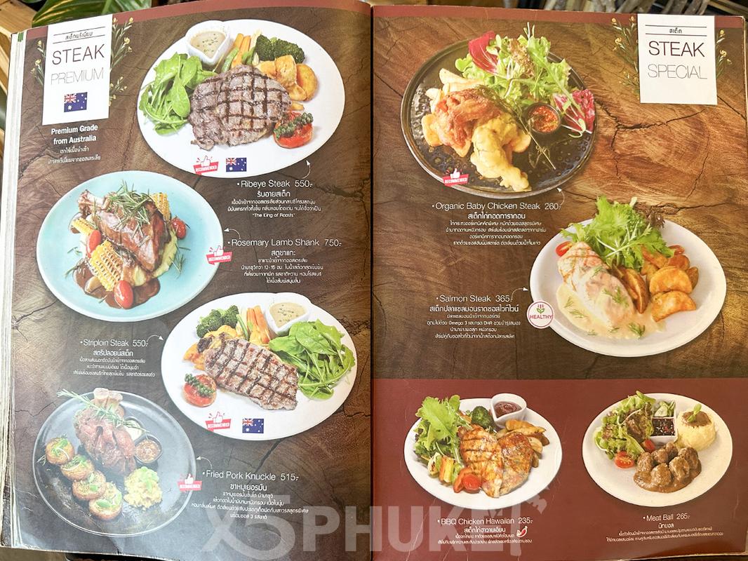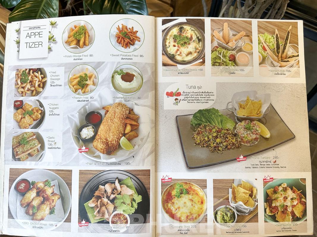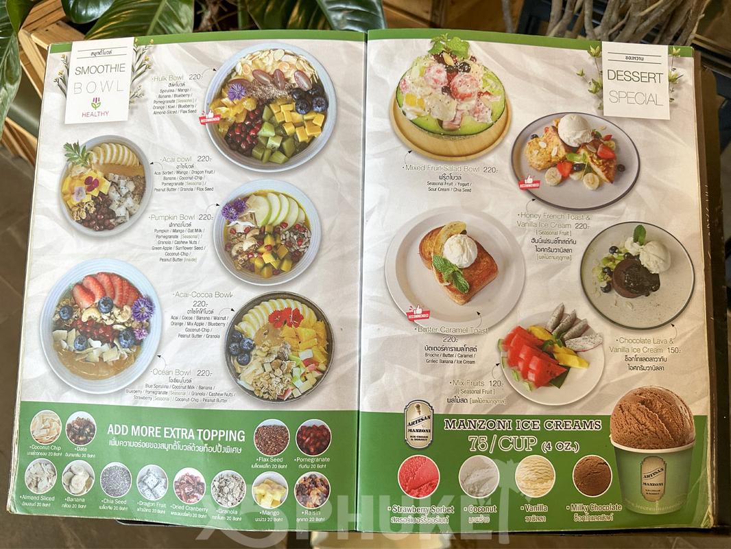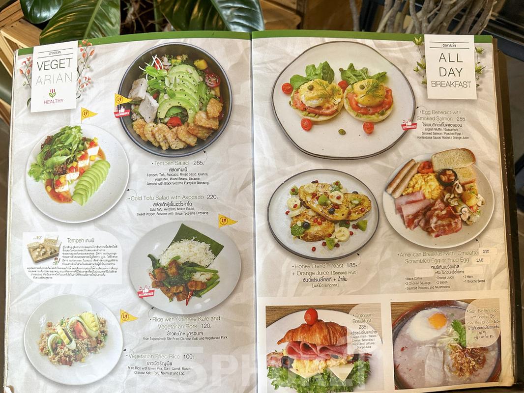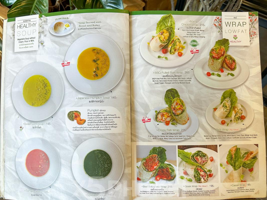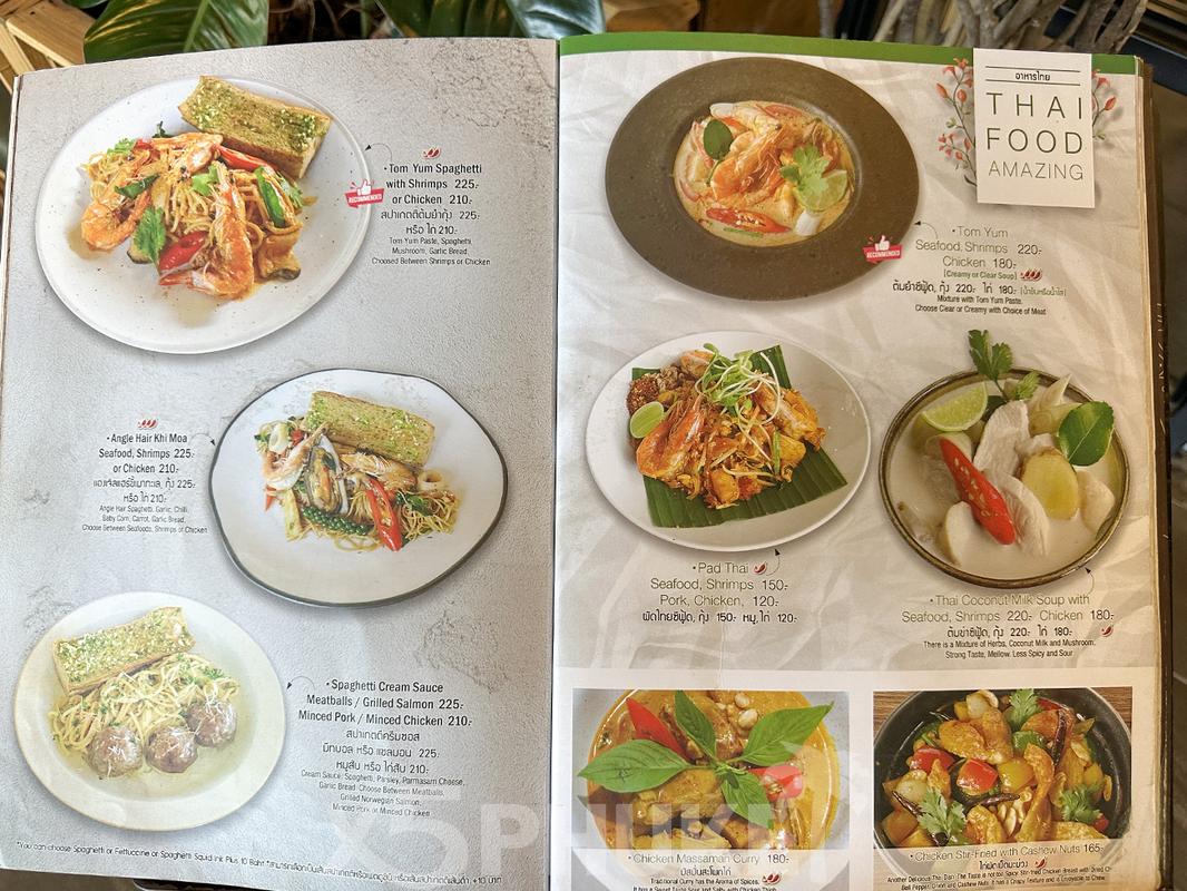 Меню сочетает тайскую, европейскую и итальянскую кухни. Оно продумано таким образом, чтобы каждый гость мог выбрать как легкое блюдо, так и более сытный вариант.