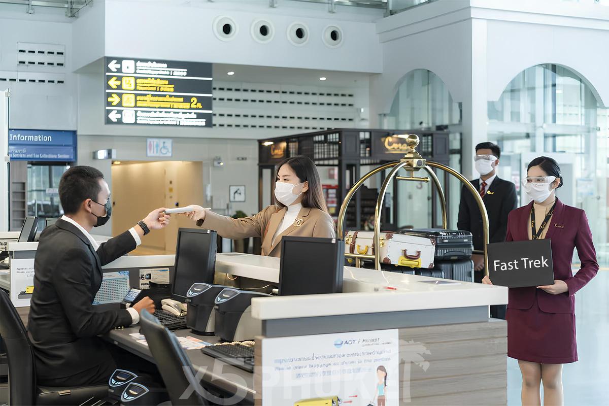 Услуга Fast Track в аэропорту Пхукета создана для тех, кто ценит комфорт, время и уверенность при прохождении паспортного контроля. После прилета вас встретит персональный ассистент с табличкой с вашим именем прямо у выхода из самолета или в зоне прибытия. Он поможет пройти все формальности максимально быстро и проведет вас через приоритетную линию паспортного контроля без очередей. Ассистент сопровождает вас на всем протяжении прибытия — от встречи до получения багажа. Вам не придется искать нужные стойки или стоять в длинных очередях, вся организация полностью на нас.