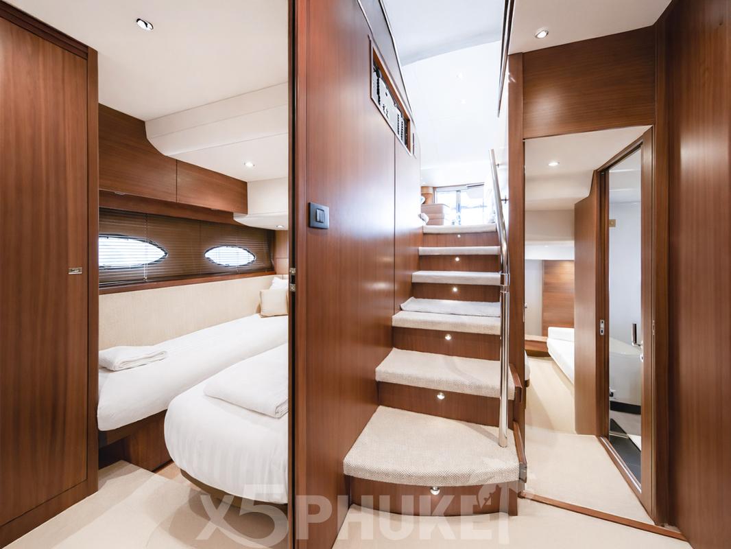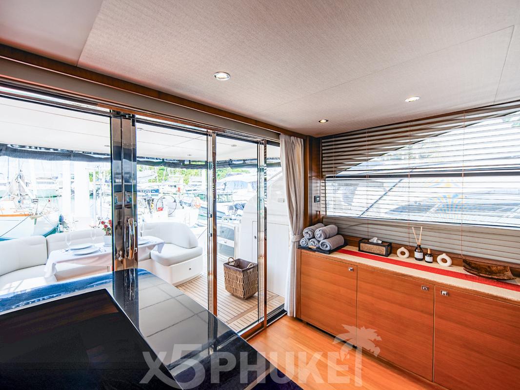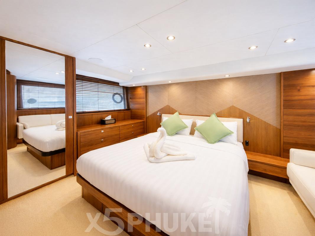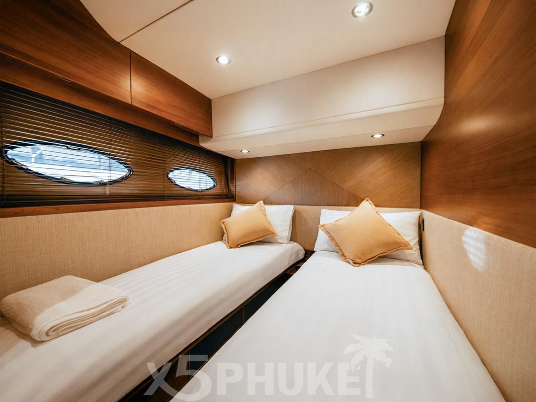 Идеальный отдых на моторной яхте Princess 52 в Пхукете - это сочетание премиального комфорта, элегантного дизайна и сервиса высокого уровня. Аренда яхты Princess 52 отлично подходит для частных морских прогулок, семейного отдыха, романтических путешествий и VIP-туров по самым живописным местам Андаманского моря. На борту гостей ждут продуманные интерьеры, роскошное постельное белье, премиальные полотенца и эксклюзивные принадлежности BULGARI, создающие атмосферу уединения и абсолютного комфорта.