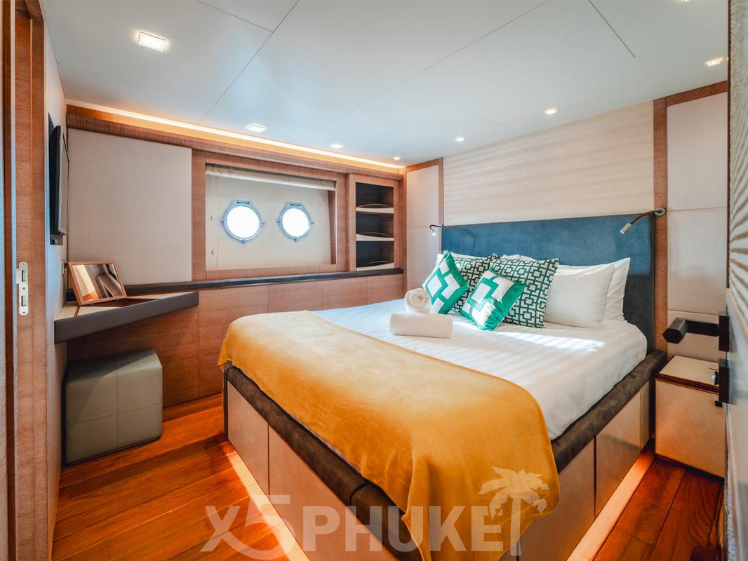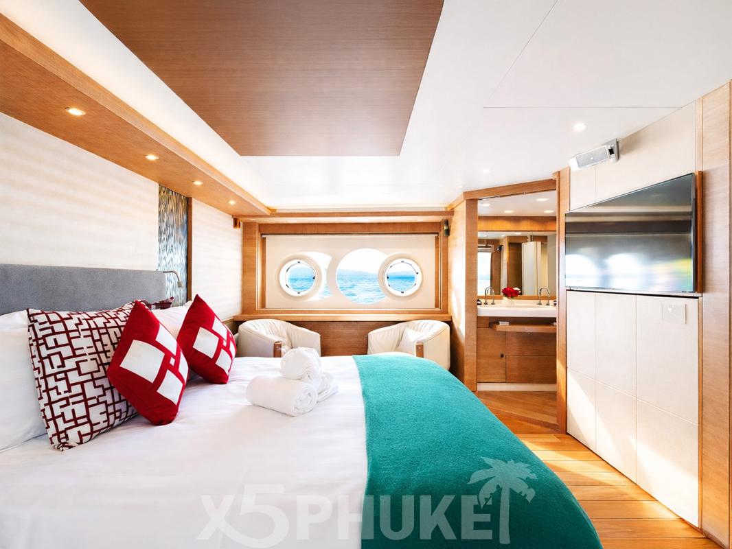 Яхта была спущена на воду в 2015 году и прошла полный рефит в 2023 году. В результате обновлений MCY 86 находится в превосходном техническом и визуальном состоянии. Интерьеры выглядят свежо и современно, а общая атмосфера на борту создает ощущение практически новой яхты. Это делает MCY 86 востребованным вариантом среди клиентов, ищущих luxury yacht charter Phuket с гарантированным уровнем качества.
