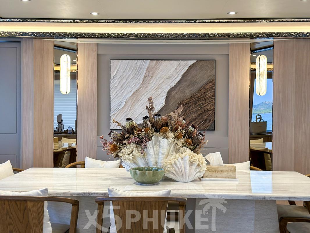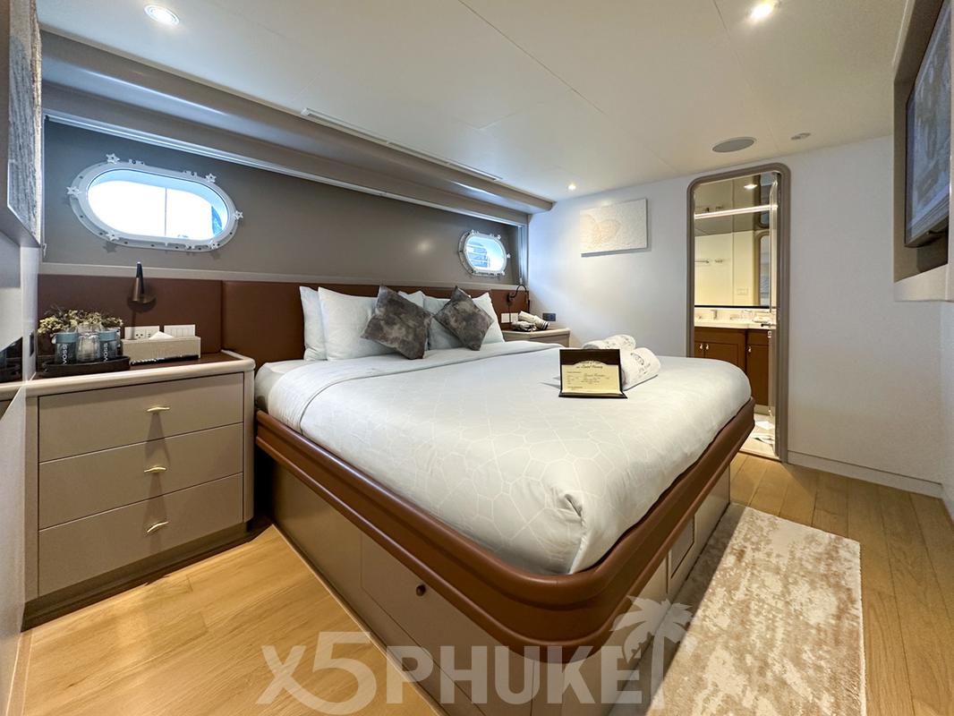 После полного рефита в 2025 году яхта получила обновлённый дизайн, современные интерьеры и максимальный комфорт. Длина 40 метров (130 ft), ширина около 8 метров, 5 просторных кают для размещения до 10 гостей, профессиональный экипаж 7 человек - всё создано для премиального морского отдыха в Таиланде.